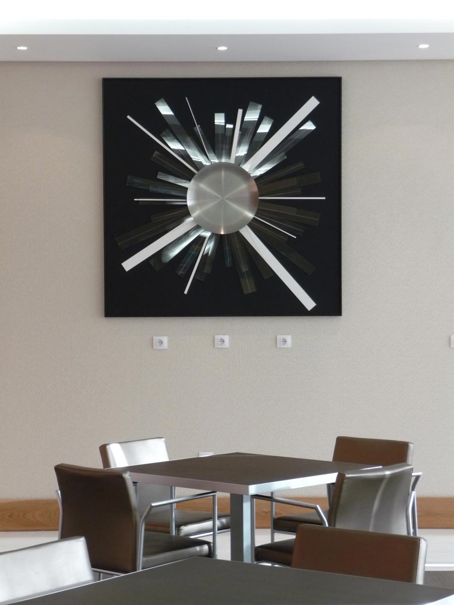| Business Almada H. Este hotel localiza-se na margem sul de Lisboa. A “passagem na ponte 25 de Abrilâ€, o Cristo Rei, o Rio Tejo, o Sol, o vento e as praias e ainda a vista sobre Lisboa, são a base do conceito artÃstico desenvolvido nas obras de arte. Encontramos serigrafias nos quartos, uma intervenção artÃstica "Travessia" com 2,95 x 1,40m na recepção, quadros a óleo no lobby entre várias outras peças que ilustram a nossa global intervenção neste hotel. |